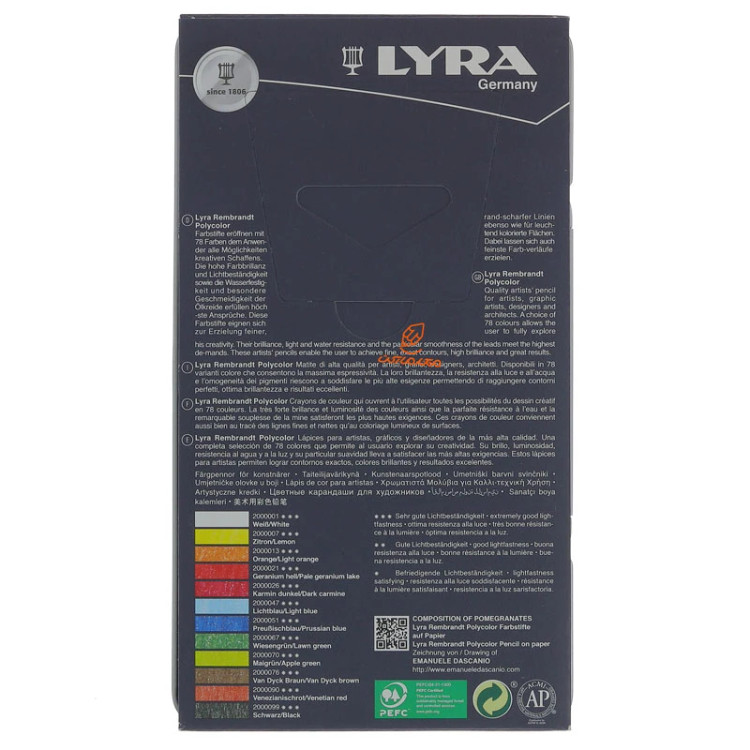 مداد رنگی پلی کالر لیرا را فقط می توان با مداد رنگی های پلی کروموس فابر و مداد رنگی های پابلو کرن داش مقایسه کرد، این مداد رنگی در دو مدل ساده و آبرنگی در بازار موجود است که هر دو مدل تمام قابلیت های مداد رنگی های حرفه ای جهان را دارا هستند .