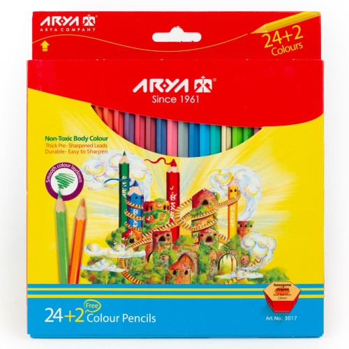 مداد رنگی ۲+۲۴ رنگ مقوایی 3017 آریا